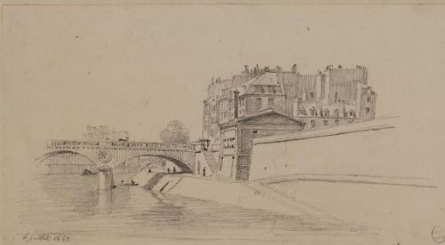 Le nouveau pont actuel en 1859, on voit encore la morgue dont George Sand
