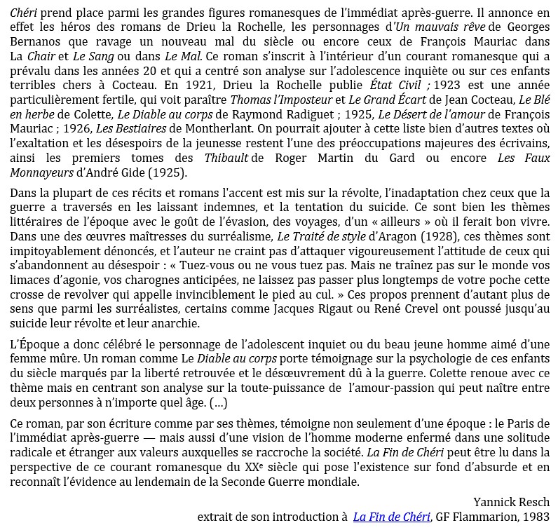 après, j'en ai lu plein. J'ai lu Chéri, La Fin de Chéri,