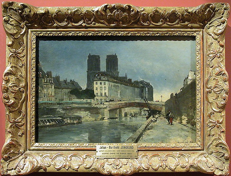 Au premier plan, le petit bras de la Seine est traversé par le