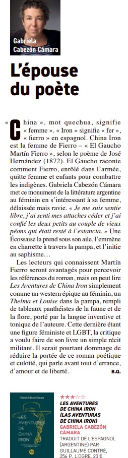 : Gabriela Cabezón Cámara", Youness Bousenna, Télérama,